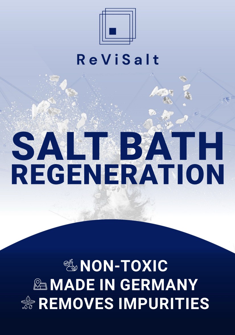 Anyone using salt molts today knows the problem that it is subject to aging. At the end, when a set quality is not met, the salt must be replaced. The liquid salt is cooled from over 400°C, disposed of at great expense and new salt must be melted again over several days. Material costs and downtimes therefore cause high process costs.