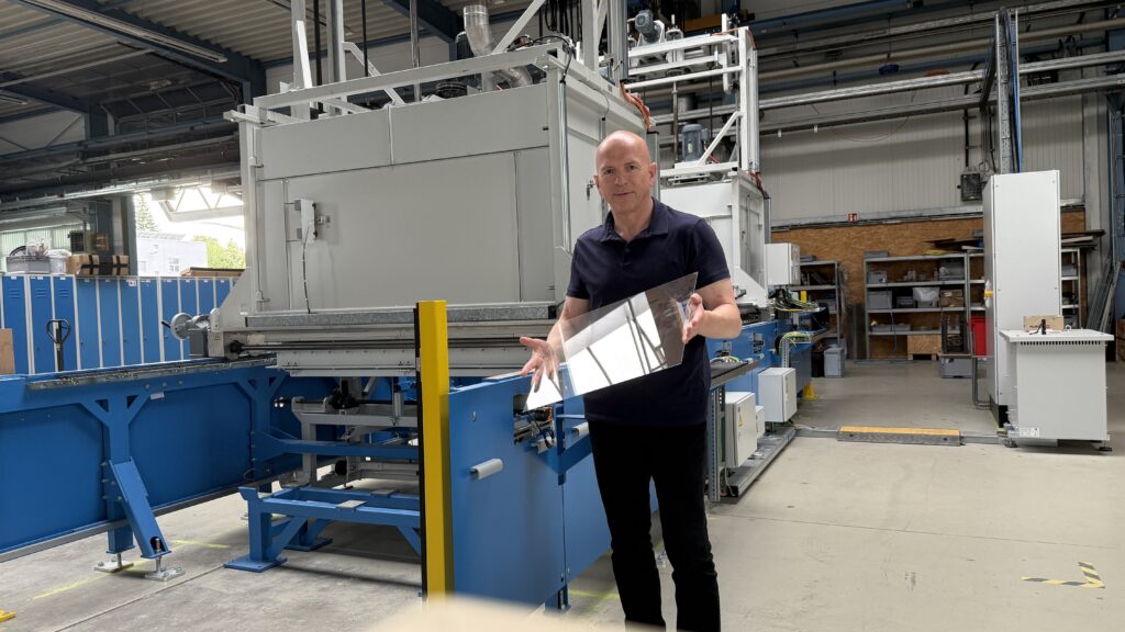 This marks a true industrial paradigm shift: the traditional process chain with hot-end coating, lehr annealing, and cold-end coating is replaced by a one-step solution, in which glass is strengthened immediately while still hot in the production process. The result: lighter and significantly stronger glass, with greater efficiency and economic performance, produced directly in-line — for the first time at industrial scale.